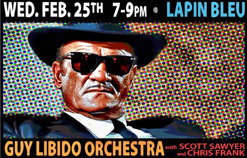 Guy Libido Orchestra featuring Chris Frank & Scott Sawyer Guy Libido Orchestra featuring Chris Frank & Scott Sawyer February 25, 2026 Chapel Hill, NC (USA) Share Details Time : 7-9pm Venue : Lapin Bleu Address : 106A N Graham St State : NC Zip : 27516